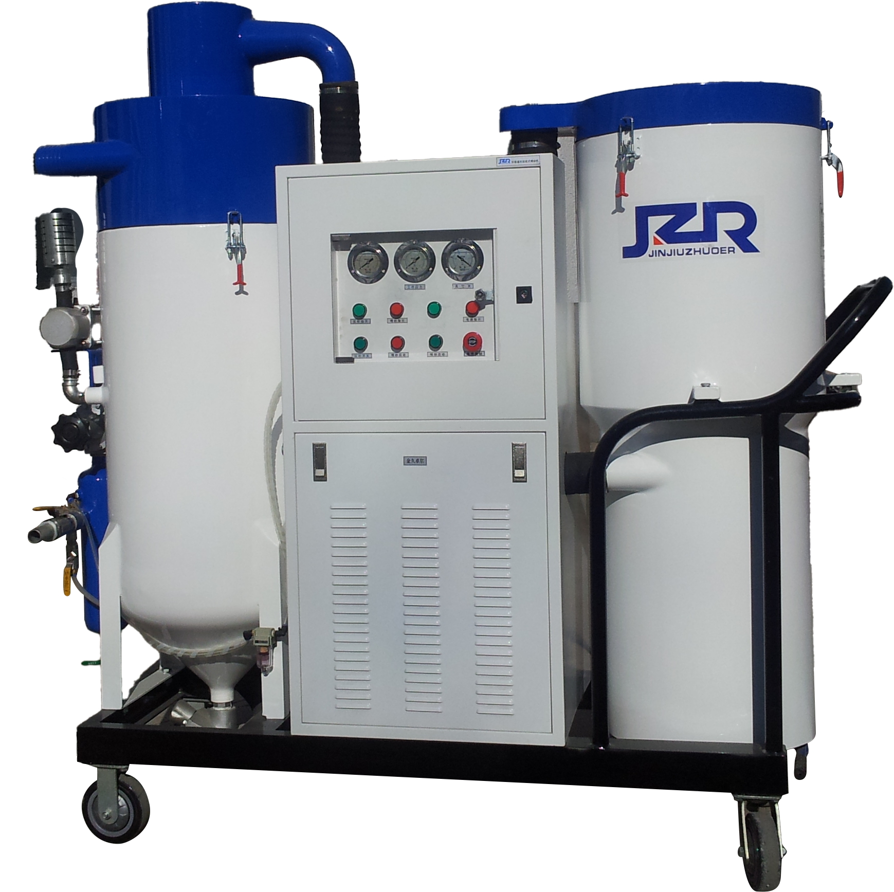 環(huán)保噴砂機 JZR-1DBXG,是我公司專門針對中小型不銹鋼材質(zhì)工件以及非金屬工件表面處理專業(yè)研制的新型特種環(huán)保循環(huán)回收噴砂設(shè)備。采用該設(shè)備可以確保噴砂現(xiàn)場無塵無污、安全無毒害,處理不銹鋼工件干凈潔白,工藝達標,既能專業(yè)清理不銹鋼工件氧化色和氧化皮及表面附著物質(zhì),同時還可得到對不銹鋼工件表面處理要求所需的粗糙度值。選用陶瓷珠、玻璃珠、不銹鋼丸磨料時,該機也可以適用于對工件表面強化處理工藝。JZR-1DBXG型噴砂機同樣具有環(huán)保達標、性能良好、用途廣泛、移動便捷、安全高效等特點,是食品機械和藥品機械表面處理標配產(chǎn)品設(shè)備之一。也可以應(yīng)用于民船修造、軌道交通、橋梁、水利、礦山、冶金、油田管道、車輛制造、市政等領(lǐng)域不銹鋼部件和不銹鋼材料表面處理。